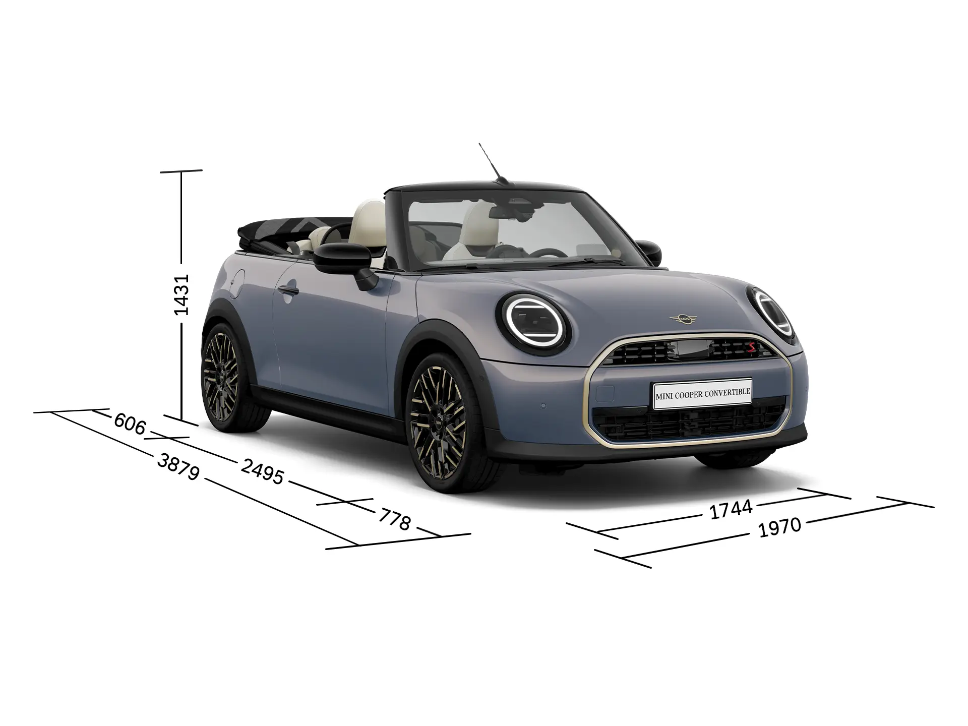 So với thế hệ trước, MINI Cooper Convertible lớn hơn một chút về tổng thể kích thước, với sự gia tăng nhẹ về chiều dài, chiều rộng và chiều dài cơ sở. Không gian nội thất và khoang hành lý rộng rãi hơn, đồng thời vẫn duy trì tỷ lệ biểu tượng và dáng vẻ nhỏ gọn đặc trưng của MINI.